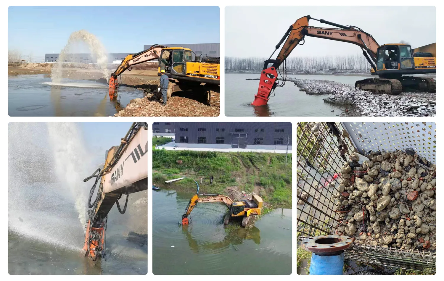 The pump is installed on the boom or bucket position of the excavator through a standard flange, without the need for an additional pump ship or power station. The movement of the excavator means the movement of the pump body, which can easily cope with areas that are difficult for traditional equipment to enter, such as shoals, shores, and complex terrain, and significantly expand the scope of operation.
