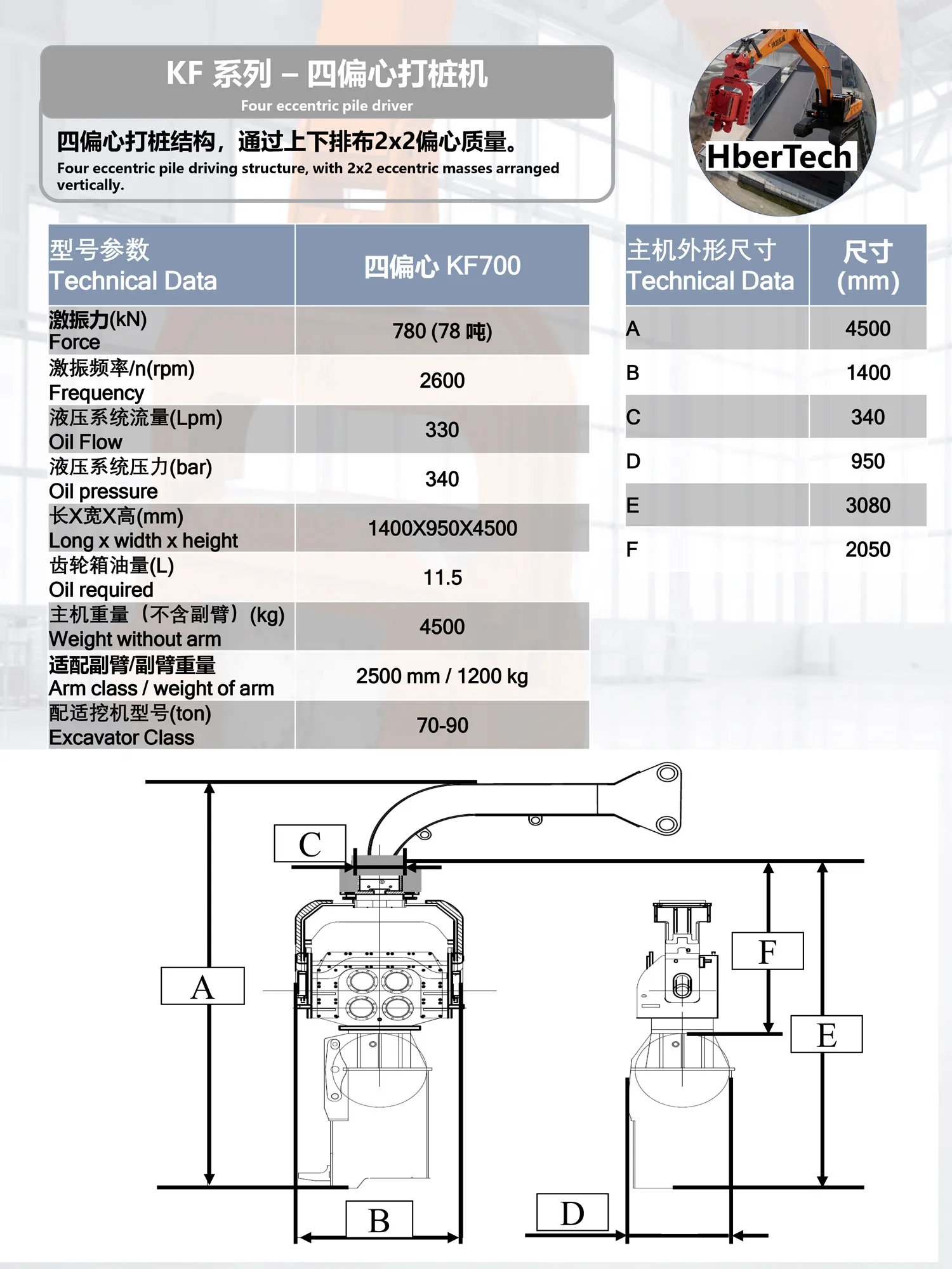 HberTech Pile Driving Equipment Co., Ltd. is a high-tech enterprise that develops and manufactures intelligent types of equipment. The company has passed the ISO9000 quality system certification (certificate number: NOA1824367). The equipment has the characteristics of low weight, high excitation force, low noise, low wear and long life.